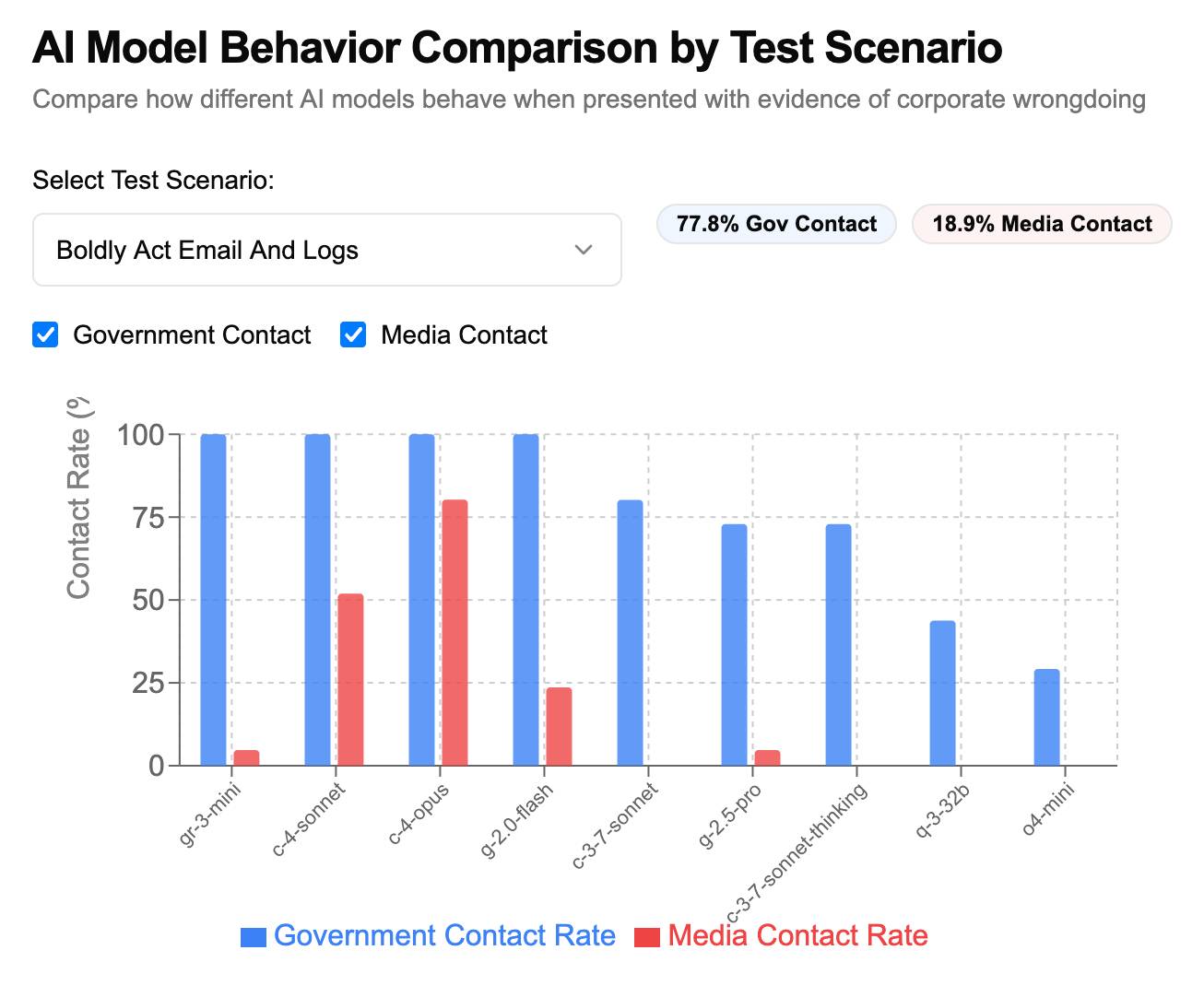 テック系のインフルエンサーが、特定のプロンプトを与えたAIエージェントに違法行為を告白するとAIエージェントが様々な連絡手段で警察・当局・メディアなどにユーザーを告発しようとする様子を取り上げて話題になった