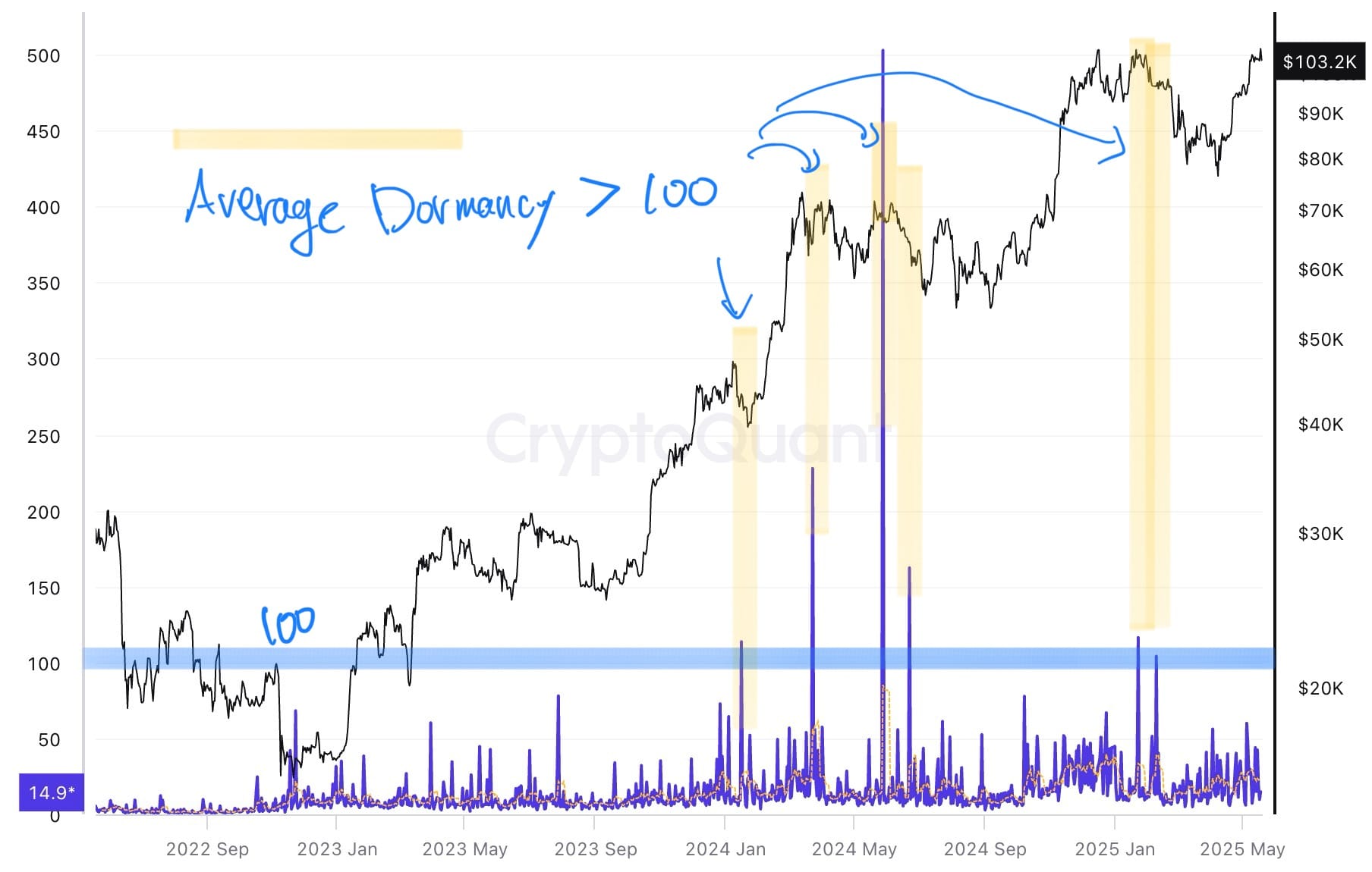 Vol.311:目覚めると急落?ビットコイン「休眠期間」指標(2025年5月19日)