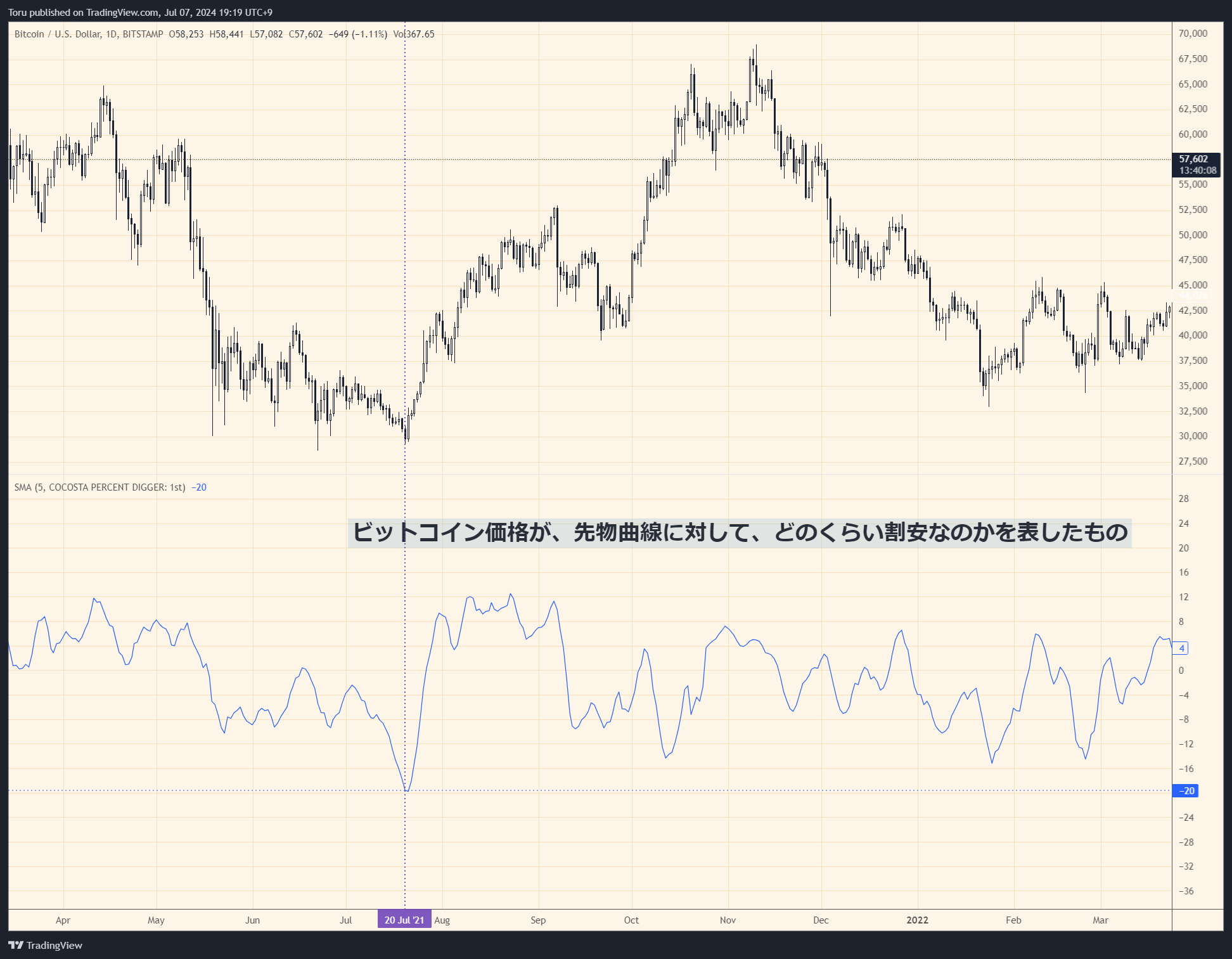 ざっくり言えば、ビットコインの将来価格が現在価格と比較して高くなるほど、先物市場参加者がビットコインに対して強気な姿勢を保っていると言うことができるかもしれません。