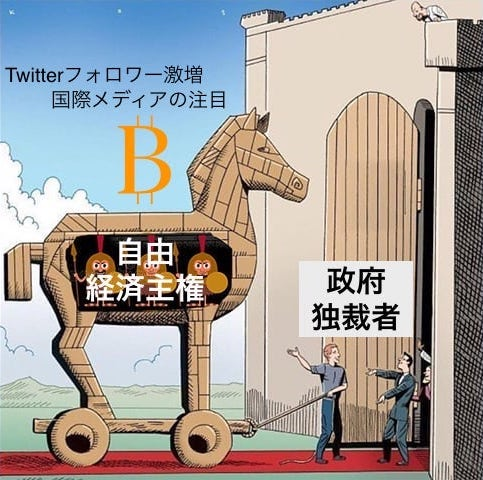 でも、良いのです。独裁国家がビットコインを採用すれば、必然的に政府は財源をインフレに依存できなくなり、人気取りのための愚策を取れなくなるため政府権限は縮小します。国民は政府による購買力横領の心配がなくなり、個人の経済的自由度、自立度は高まります。国家がビットコインを採用する動機がPRや承認欲など不純なものでも結果オーライなのです。ビットコインはトロイの木馬のようなものです。