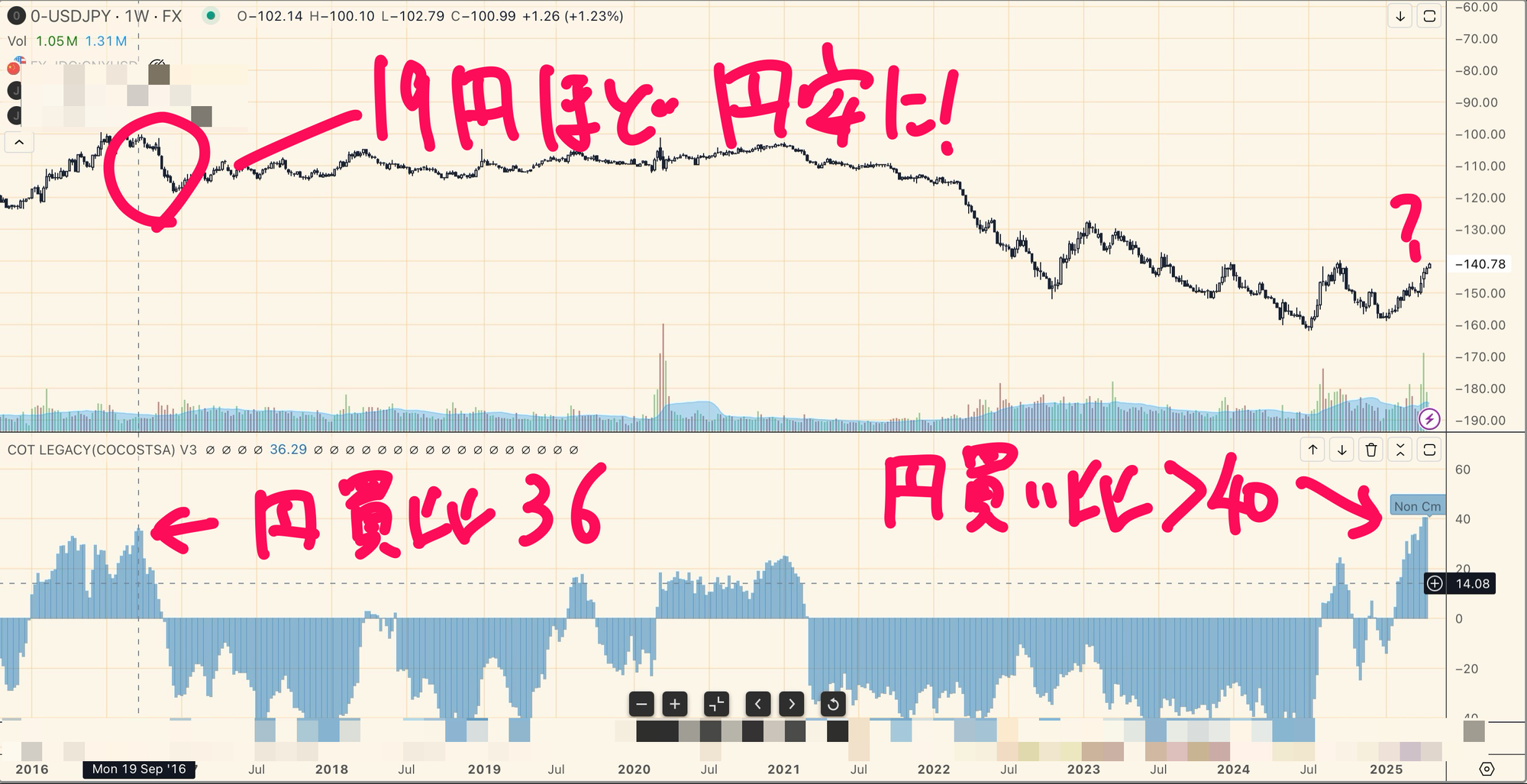 さて直近のドル円は一気に140円まで下げ、ということで激しく動いています。