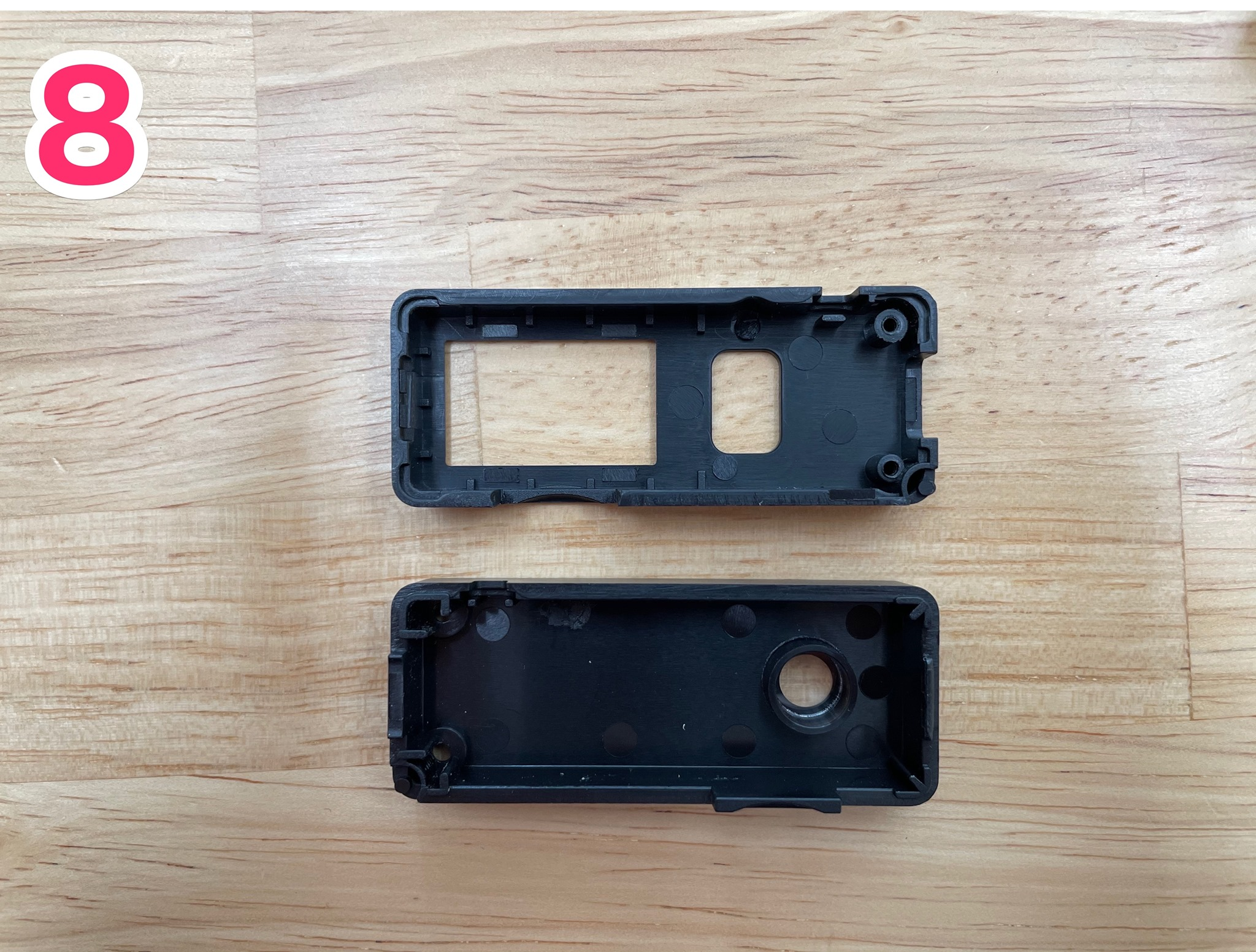 (8) 筐体は独自に設計・製造したもののようです。ネジ2本で組み立てができるシンプル設計です。