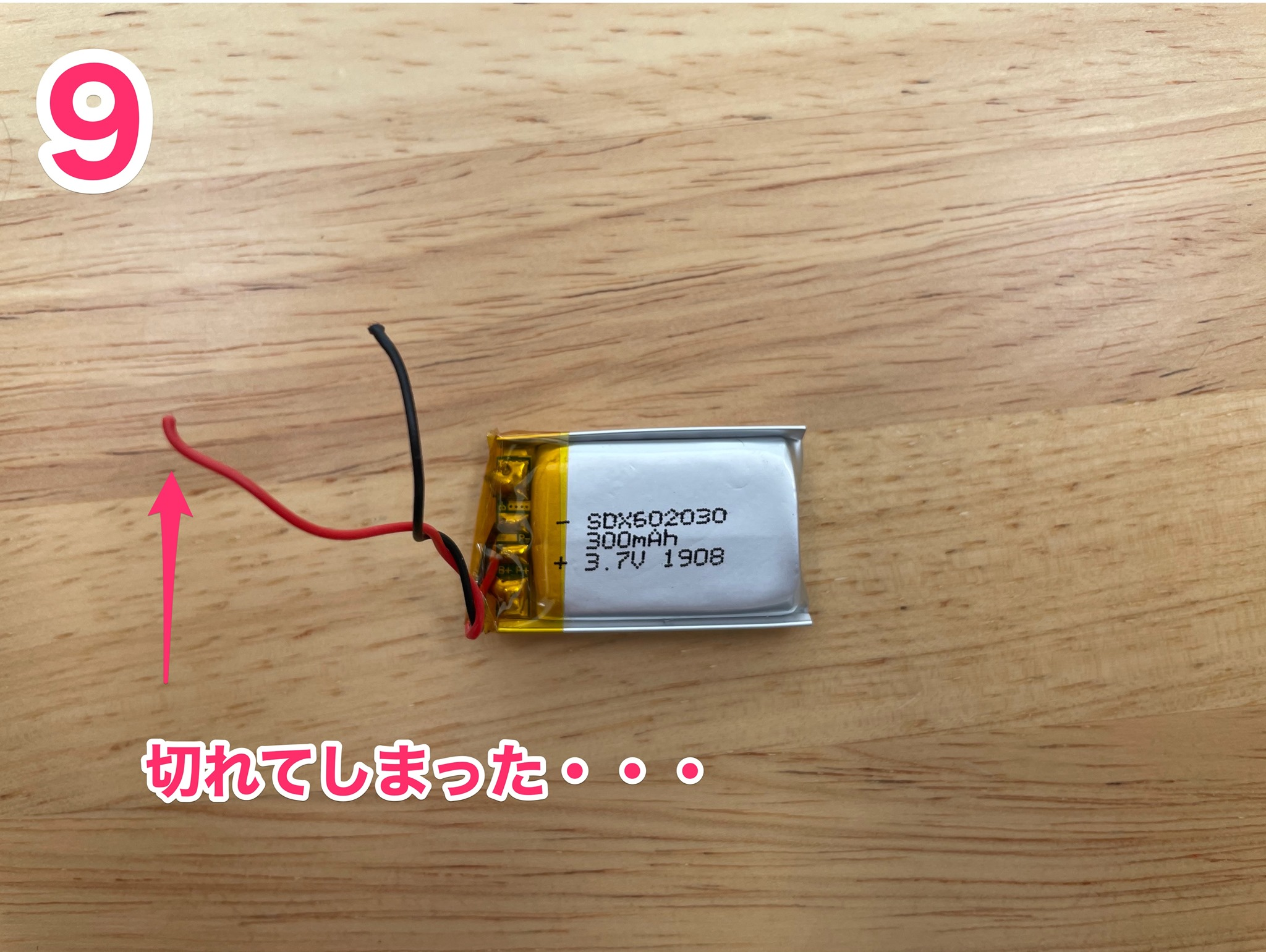 (9) 撮影しているうちにリチウムイオン電池の導線が切れてしまいました・・・!いとも簡単に切れてしまったので少々不安が残ります(会社の経費で購入したものなので,一応修理しました)。そもそも,このリチウムイオン電池の寿命は3年程度ですので,長期の運用には向いていません。いつか電池が劣化して使えなくなってしまいます。TrezorやLedgerがUSB給電なのはそのような理由です。