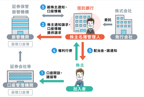 上場企業の場合は、毎日株式が取引されるので、毎日株主名簿が更新されるはずです。この際、上場企業自体にある株主名簿を毎日書き換えるのでは不便なので、「オンチェーンの帳簿」は基本的には株式名簿管理人(信託銀行等)が管理し、必要に応じて最新の情報に更新することになります。