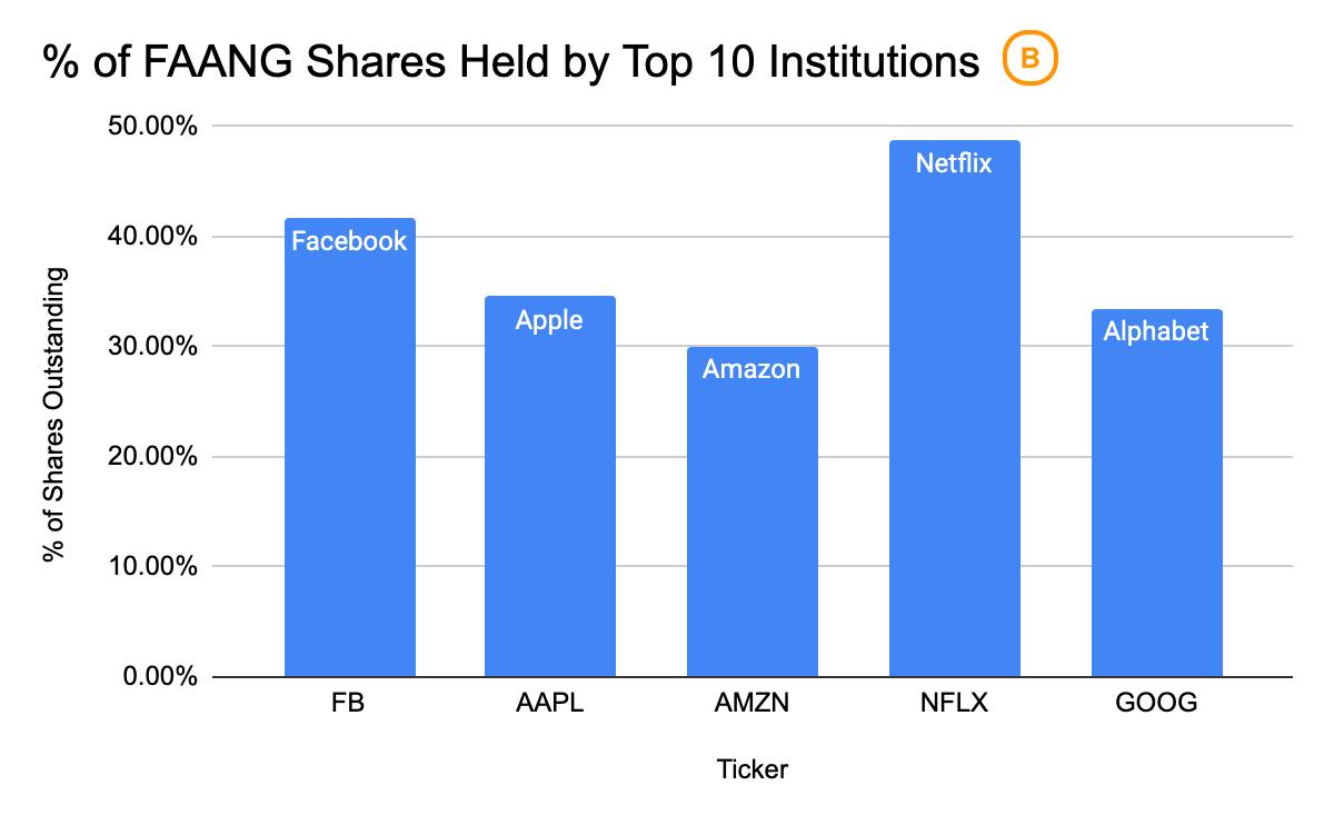 米国株はビットコインと似たような状況にあるようです。文末チャートBによると FAANGの発行株式総数に占める金融機関上位10社の保有数の割合は30~50%です。これはGBTCと同じで、投資家は現物を保有する代わりに、これらの金融機関が運用する投資信託やETFなどを介してFAANG株へのエクスポージャーを得ます。