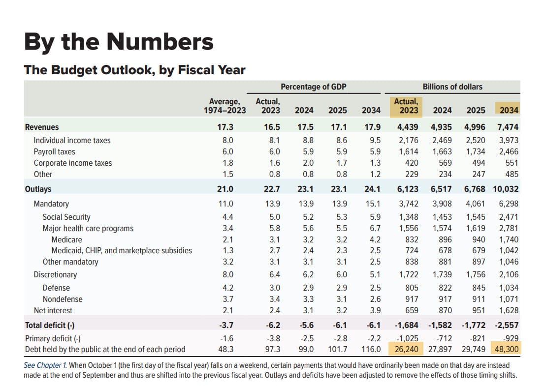 もう一つの指標である政府の財政破綻についてはどうでしょうか?こちらは米国の予算局が予測を出していますので、そちらを見てみましょう。