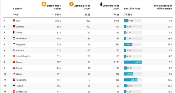 添付画像②は自分で作成した10月末時点でのビットコイン、イーサリアム、Lightningのノード数の国別のランキングなのですが、フルノードの数≒開発の盛り上がり度とするならば、ビットコインを始めとしたパブリックチェーンの開発はアメリカとヨーロッパ(特にドイツ)