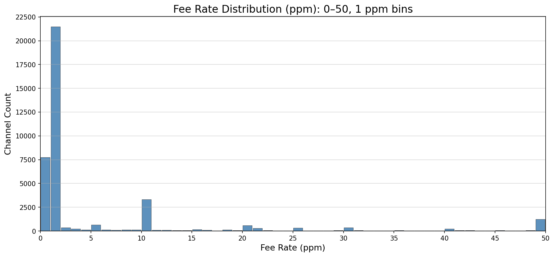 手数料設定に最適解はありませんが、ネットワーク全体の分布を把握することで、自身のノード運用における手数料戦略の参考になれば幸いです。