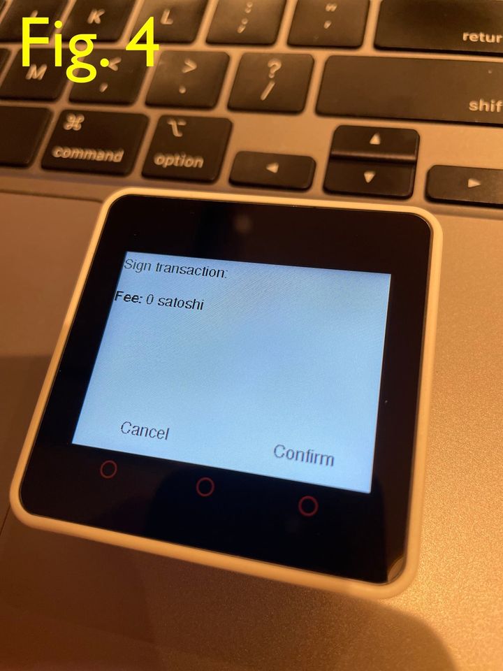 そして,トランザクションはPCなどからBluetooth経由で送ることになります。実際にテキトウなトランザクションを送ってみるとFig. 4のようになり,トランザクション内容を確認することができます。きちんとしたトランザクションを生成すれば送金先のビットコインアドレスなどが表示される(・・・はずですがまだ試していません。)