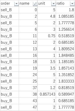 が出ていた時に、約定するといった具合です。このあたりの仕組みは細かくやれば色々な注文が物々交換市場でもできるかもしれませんが、面倒なので、1日1回、板寄せで約定させるだけという市場にします。とりあえず、これで交換レートが決定できます。