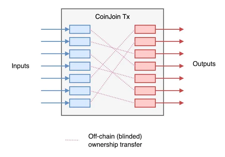 本稿の読者には昔からのビットコイナーも多くいらっしゃるので、誰かにビットコインを支払う前などに一度はWasabi WalletのようなCoinjoinを使ったことのある方もいらっしゃるかと思います。そういう方はご存知かと思いますが、Coinjoinでは基本的に「0.1BTC, 0.01BTCなど決まった金額のUTXOを多数のユーザーと共有するトランザクションで混ぜる」という仕組みになっています。