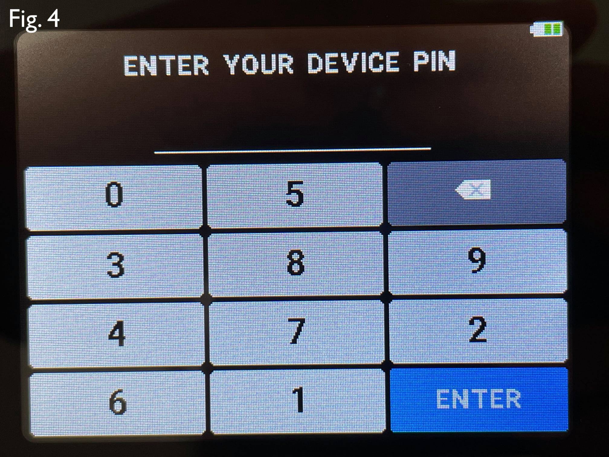 Fig. 4 起動時にPINを求められます。キーパッドの数字の位置もランダムに変更されるのでセキュリティに配慮されています。