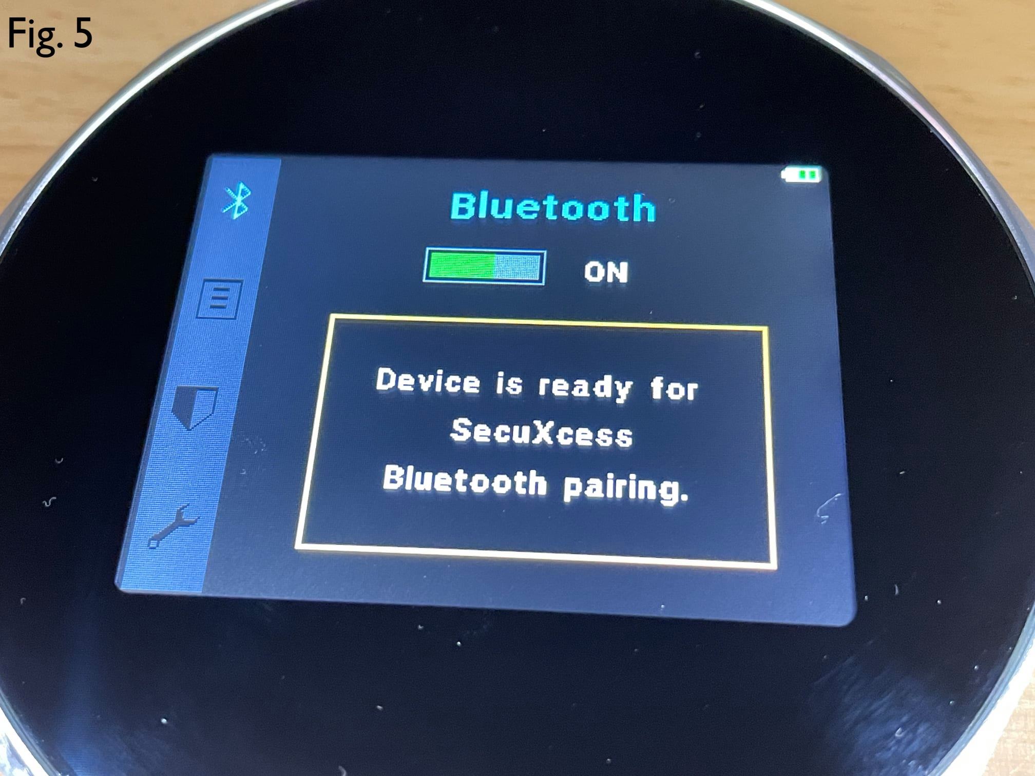 Fig. 5 Bluetooth でペアリングします。iOS,Android,パソコンいずれも対応しています。BluetoothといってもBluetooth Low Energy (BLE)です。通常のBluetoothよりも低諸費電力ですが,通信速度は現実的には1Mbpsも出ないですが,トランザクションのデータをやりとりするだけですので十分です。無線ですと若干セキュリティが心配ですが,ペアリングされていればプロトコルレベルで通信内容は暗号化されています。何より,送金時にはどのようなハードウェアウォレットであれ画面上でトランザクション内容(アドレスと送金量)をチェックすることが重要です。ハードウェアウォレットそのものより,インターネットに接続されたスマートフォンやパソコンなどのソフトウェア側でトランザクション内容を書き換えるような攻撃をされることに気をつけるべきです。