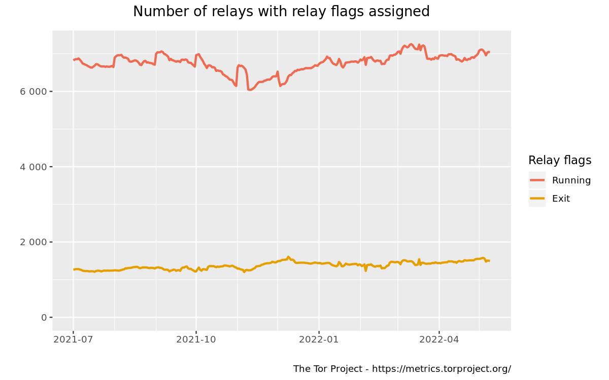 特に、セキュリティ的な面を考えるとなかなか担い手ボランティアがいないExitノードについては、1,000〜1,500台くらいで推移しています。