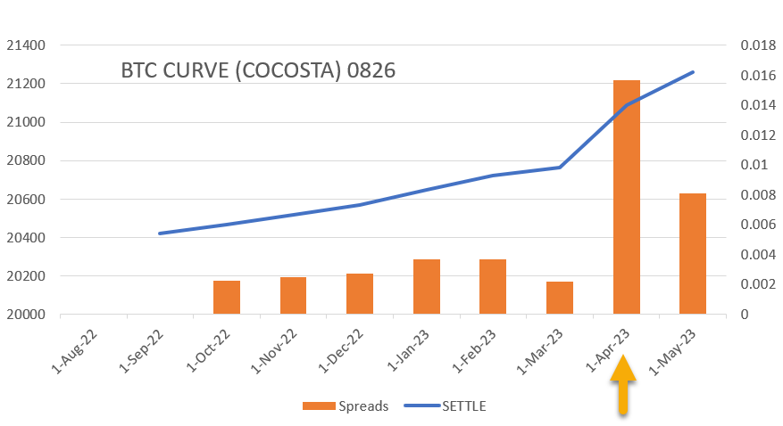 さてここまでは推測の話。ではビットコインのCME先物曲線で実弾の声を確認してみましょう。