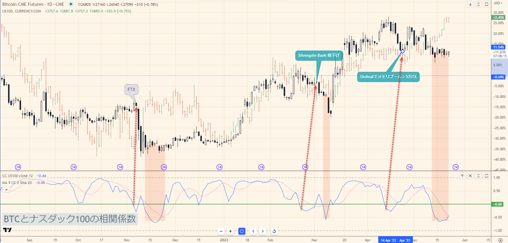 相関外れる → Silvergate破綻 → 相関係数深掘りり → 底打ち
