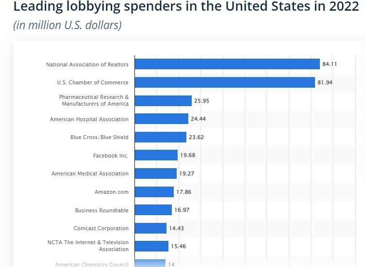 https://www.statista.com/statistics/257344/top-lobbying-spenders-in-the-us/