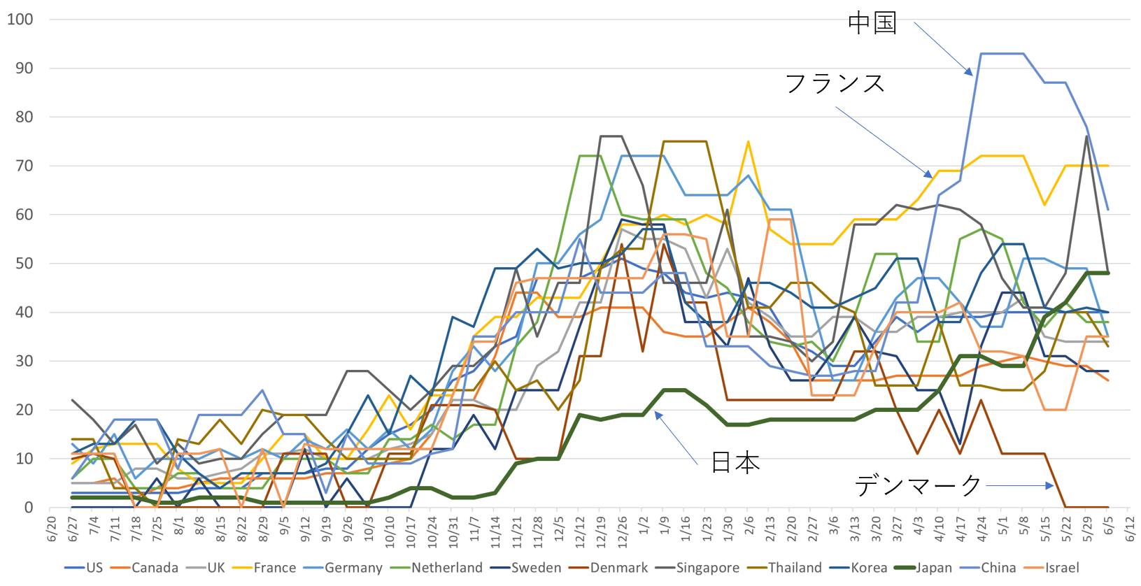すべての国の結果を一つにグラフ化しました(添付画像)。