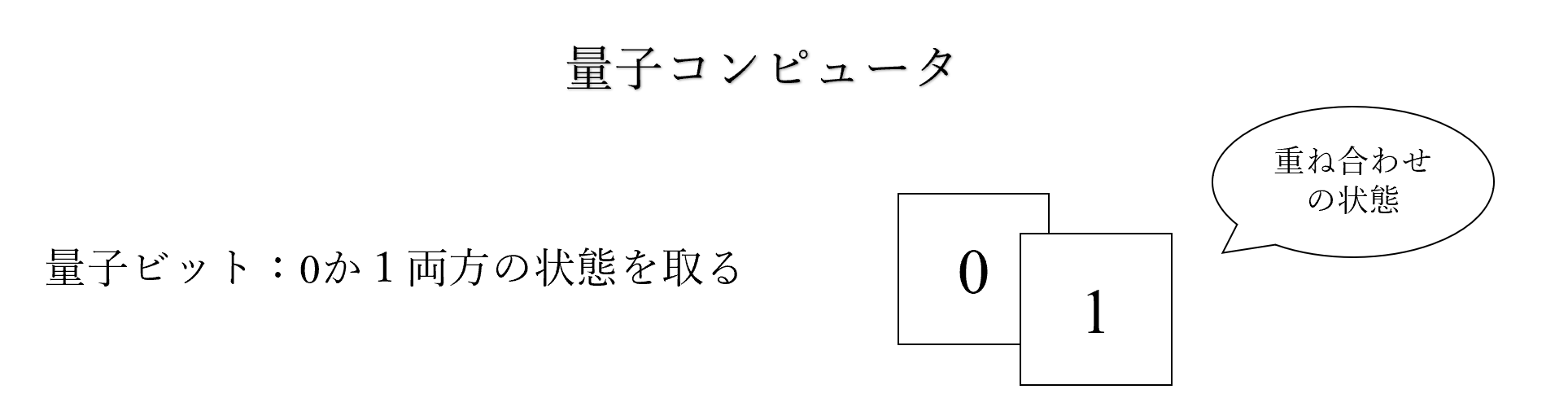 量子コンピュータでは10量子ビットを使う場合、1024通りすべての状態の重ね合わせを同時に保持できます。n量子ビットなら、2ⁿ個の状態を保持することができるということです。