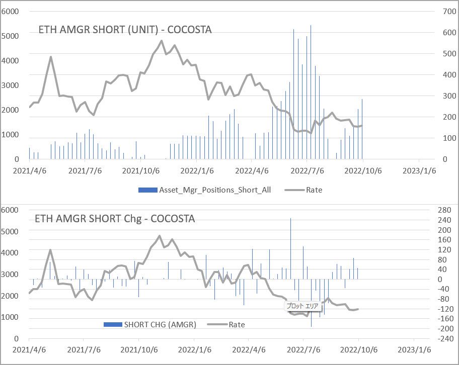 こちらはイーサリアムの先物。こちらはアセマネが3週連続で売り玉を積み上げています。