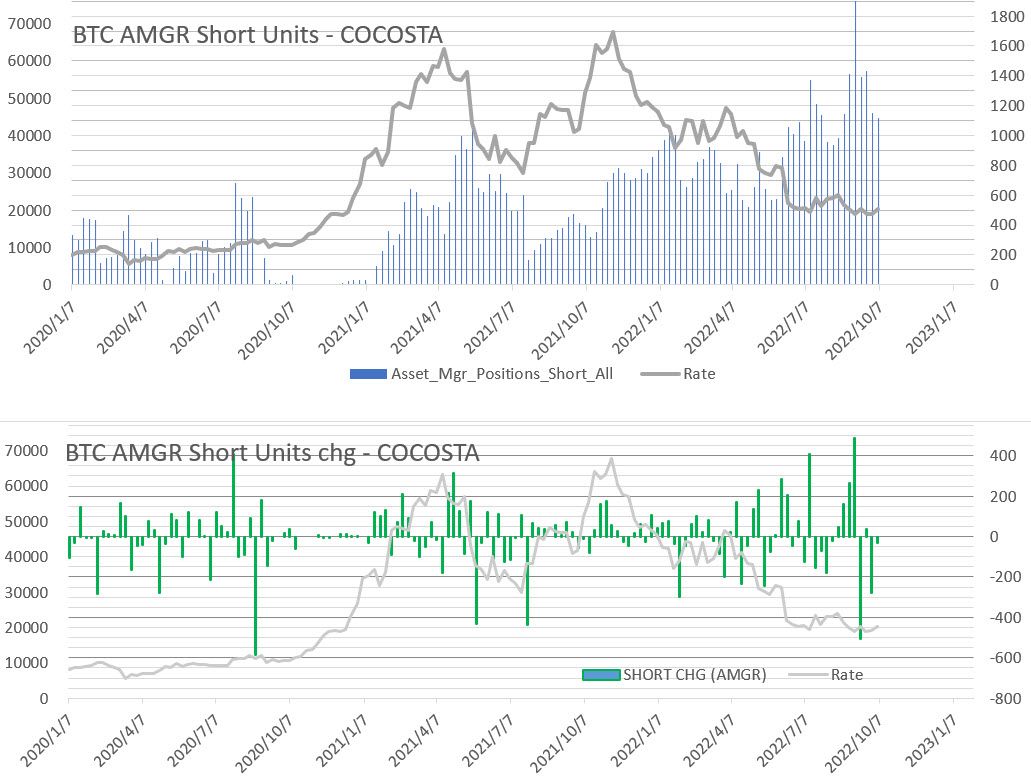 ではまずビットコインから。いつもの相場巧者、アセットマネジャーの売り建玉推移です。