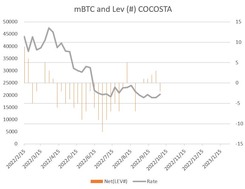 こちらはマイクロビットコインのトレーダー比率。4週続けて「買い」に触れていましたが、ついに「売り」へと転落。ボラティリティも下がり市場参加者が抜けた結果でもあります。