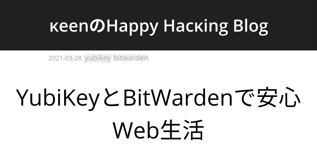 そのついでに、パスワードマネージャーが単一障害点になってしまうので、セキュリティ向上のためにかねてから使ってみたいと思っていたYubikeyを導入してみました。